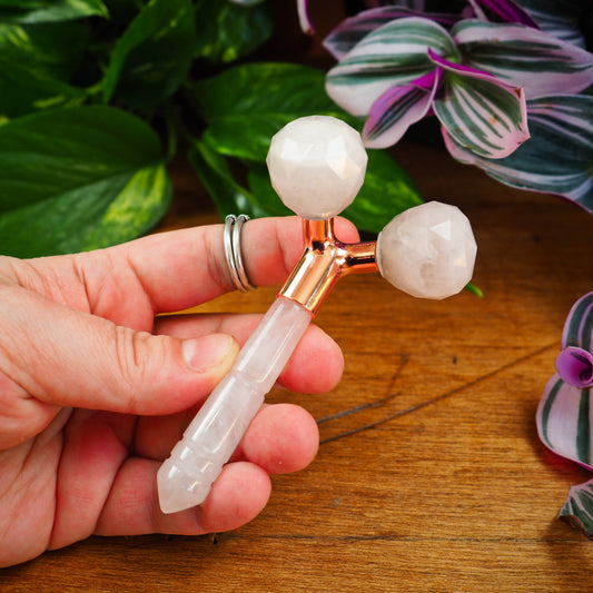 Double Crystal Face Roller - Rose Quartz