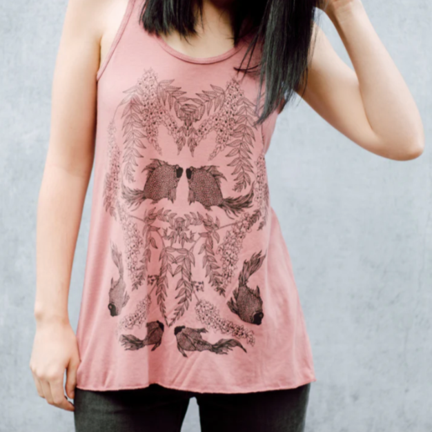 Elevate your wardrobe with our soft and lightweight racerback tank in a stunning dusky rose hue. Featuring gathered detailing on the back and a flattering rounded neckline, it's perfect for wearing alone or layering with a cardigan or light jacket.