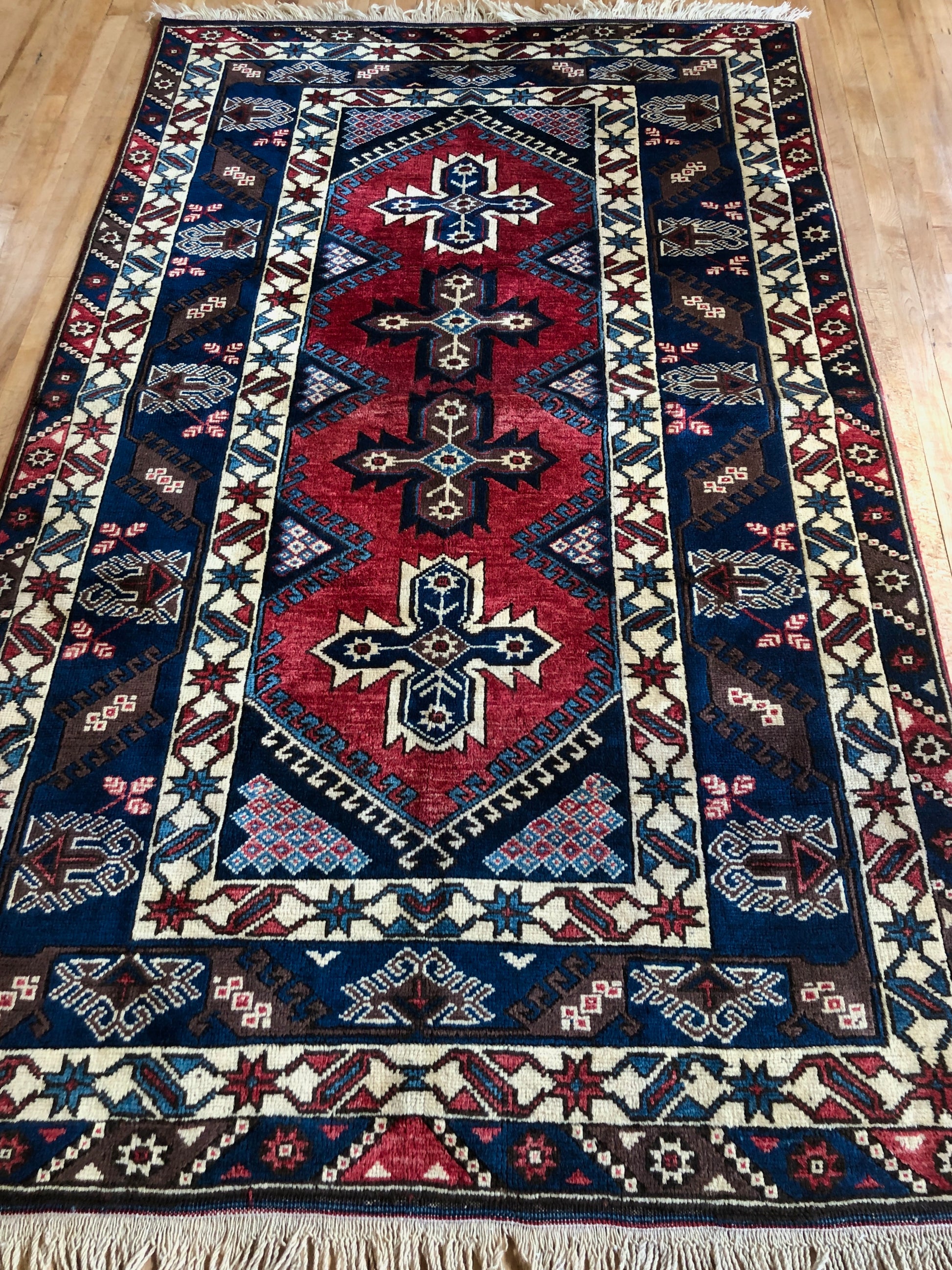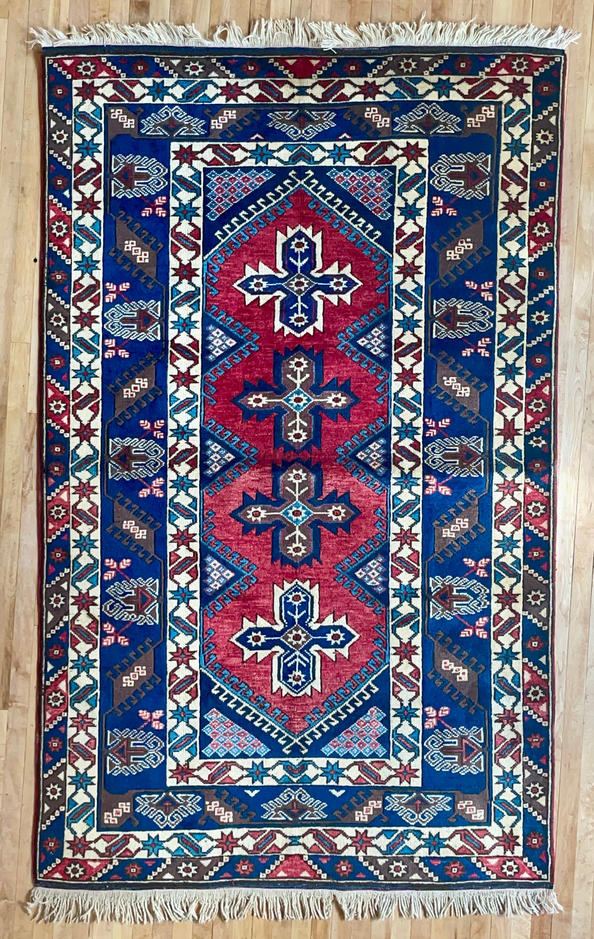 This Turkish rug is handmade with superior-quality wool and weave. Its very dense pile ensures it will last for generations. Turkish Rugs are famous for their beautiful designs. You can put this Turkish rug in any high-traffic room.