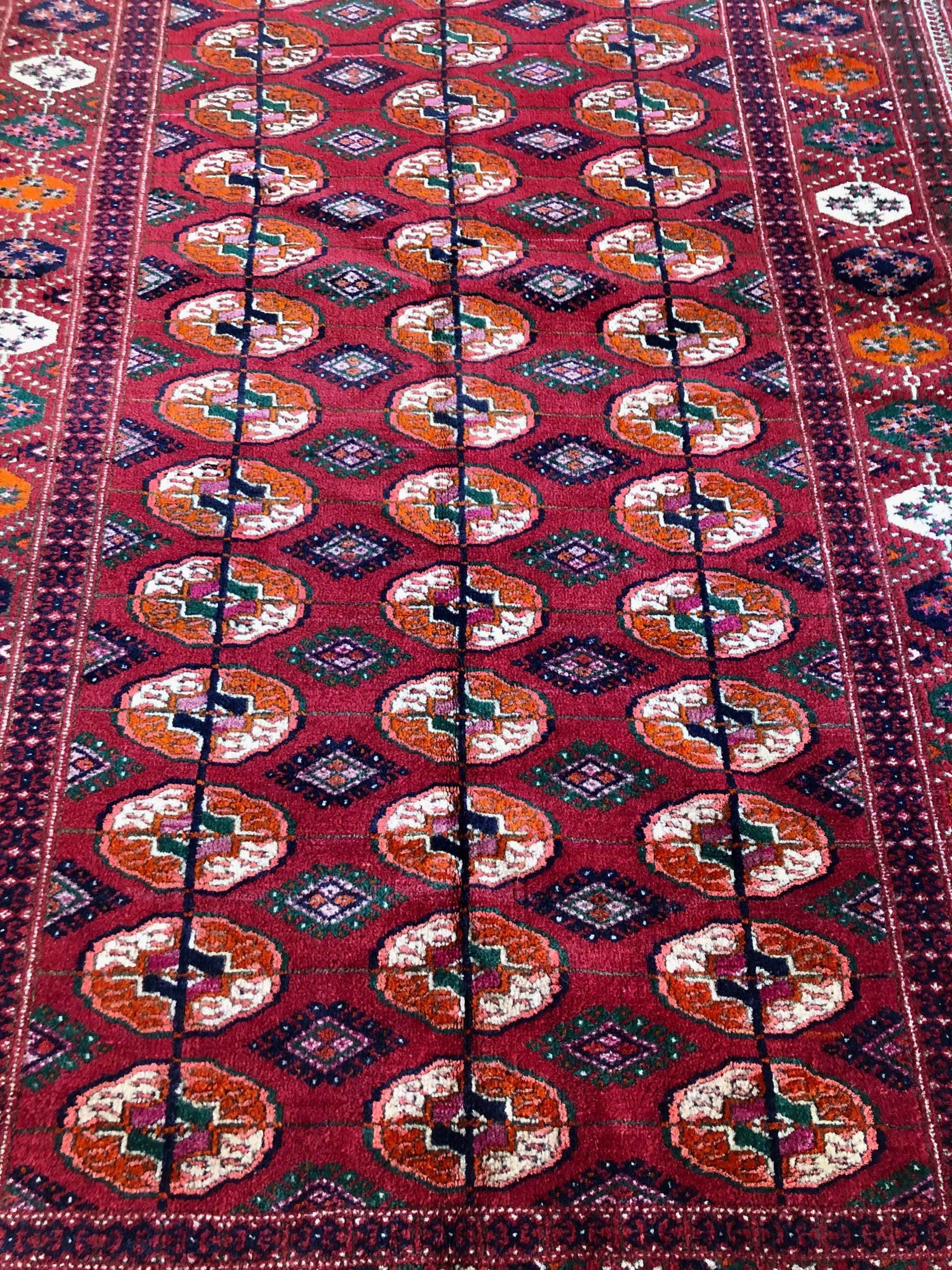 This Turkish rug is handmade with superior-quality wool and weave. Its very dense pile ensures it will last for generations. Turkish Rugs are famous for their beautiful designs. You can put this Turkish rug in any high-traffic room.