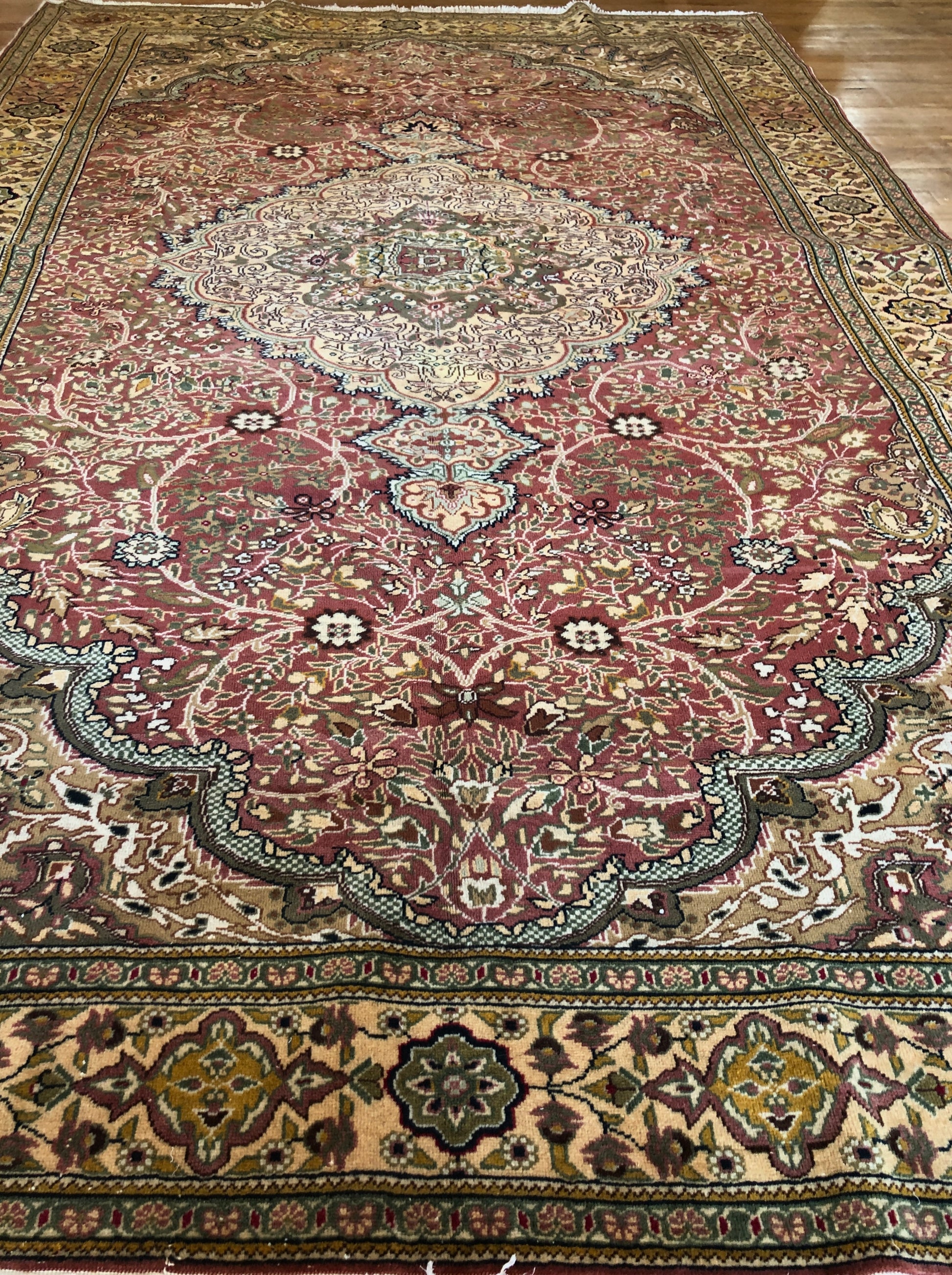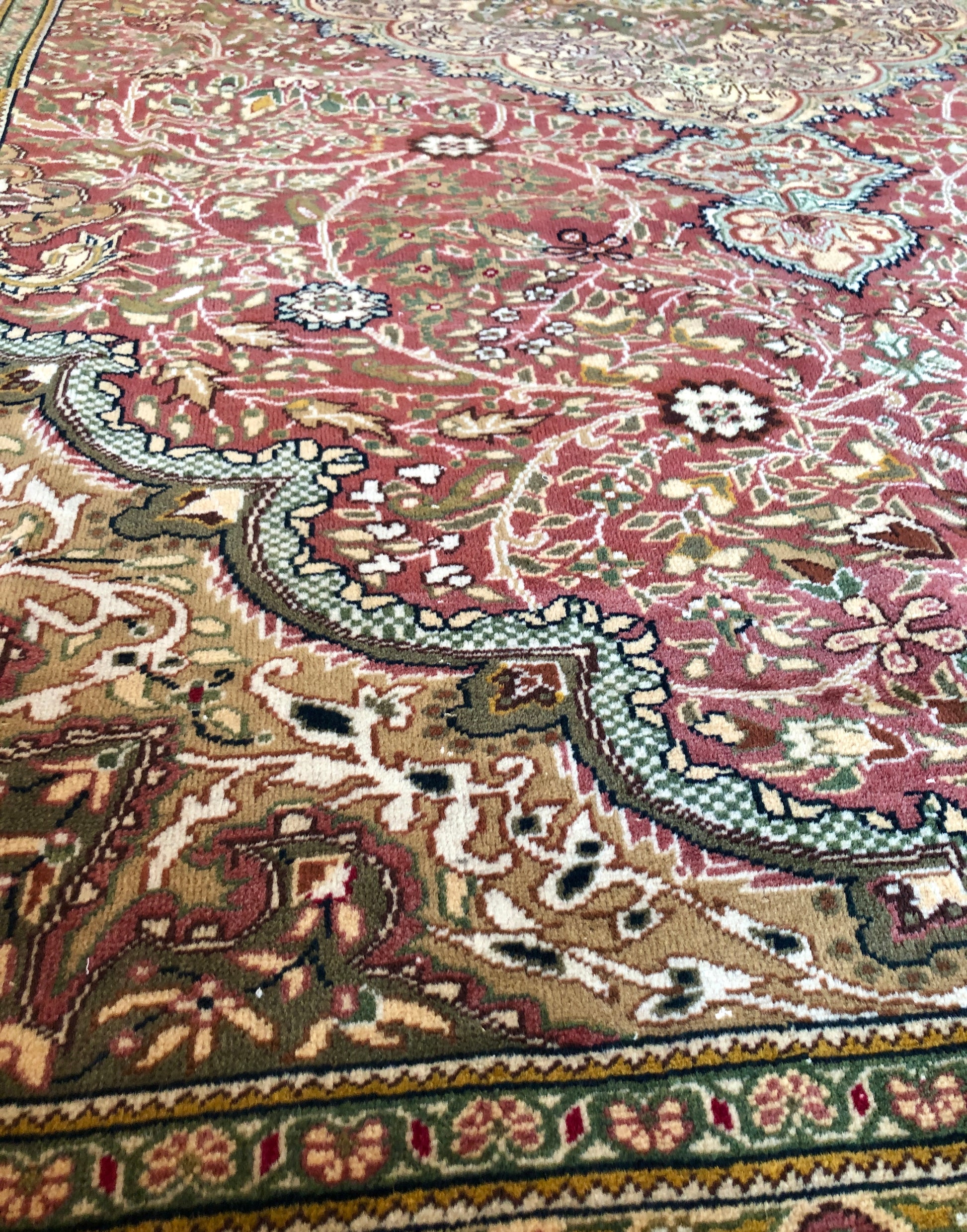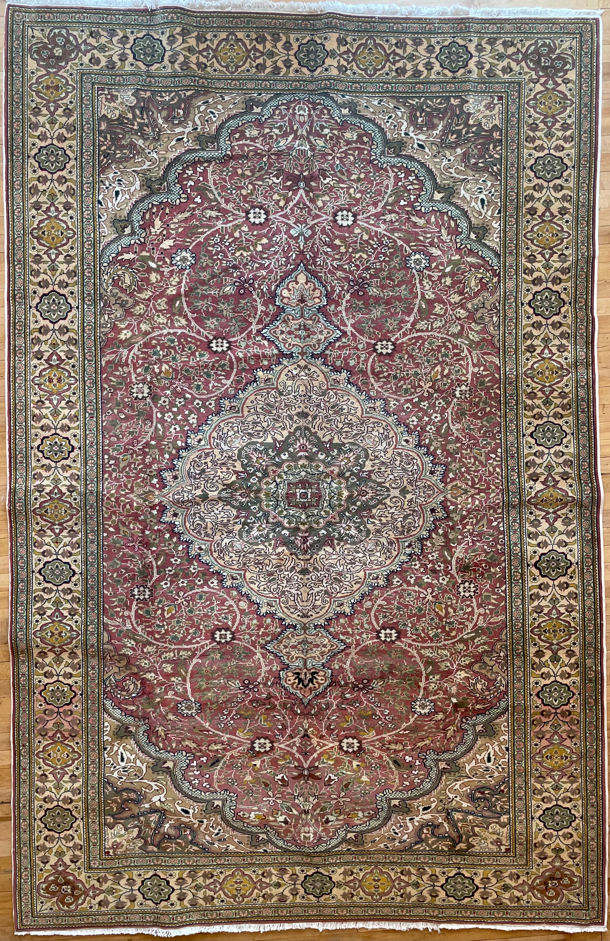 This Turkish rug is handmade with superior-quality wool and weave. Its very dense pile ensures it will last for generations. Turkish Rugs are famous for their beautiful designs. You can put this Turkish rug in any high-traffic room.