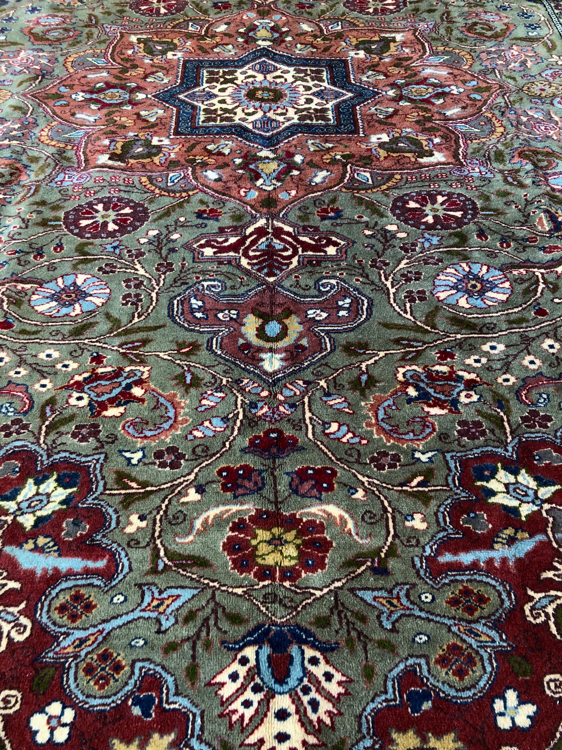 This Turkish rug is handmade with superior-quality wool and weave. Its very dense pile ensures it will last for generations. Turkish Rugs are famous for their beautiful designs. You can put this Turkish rug in any high-traffic room.