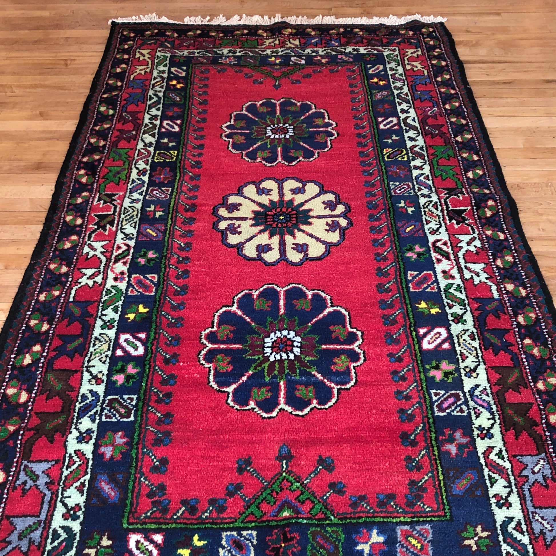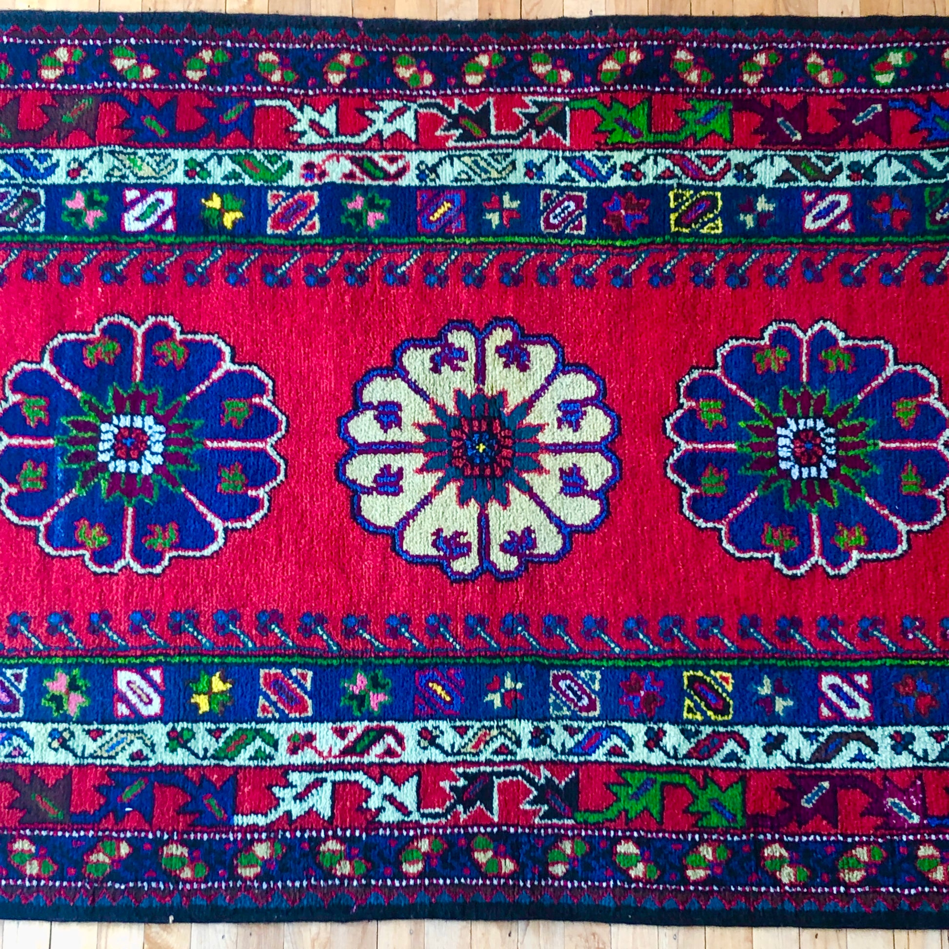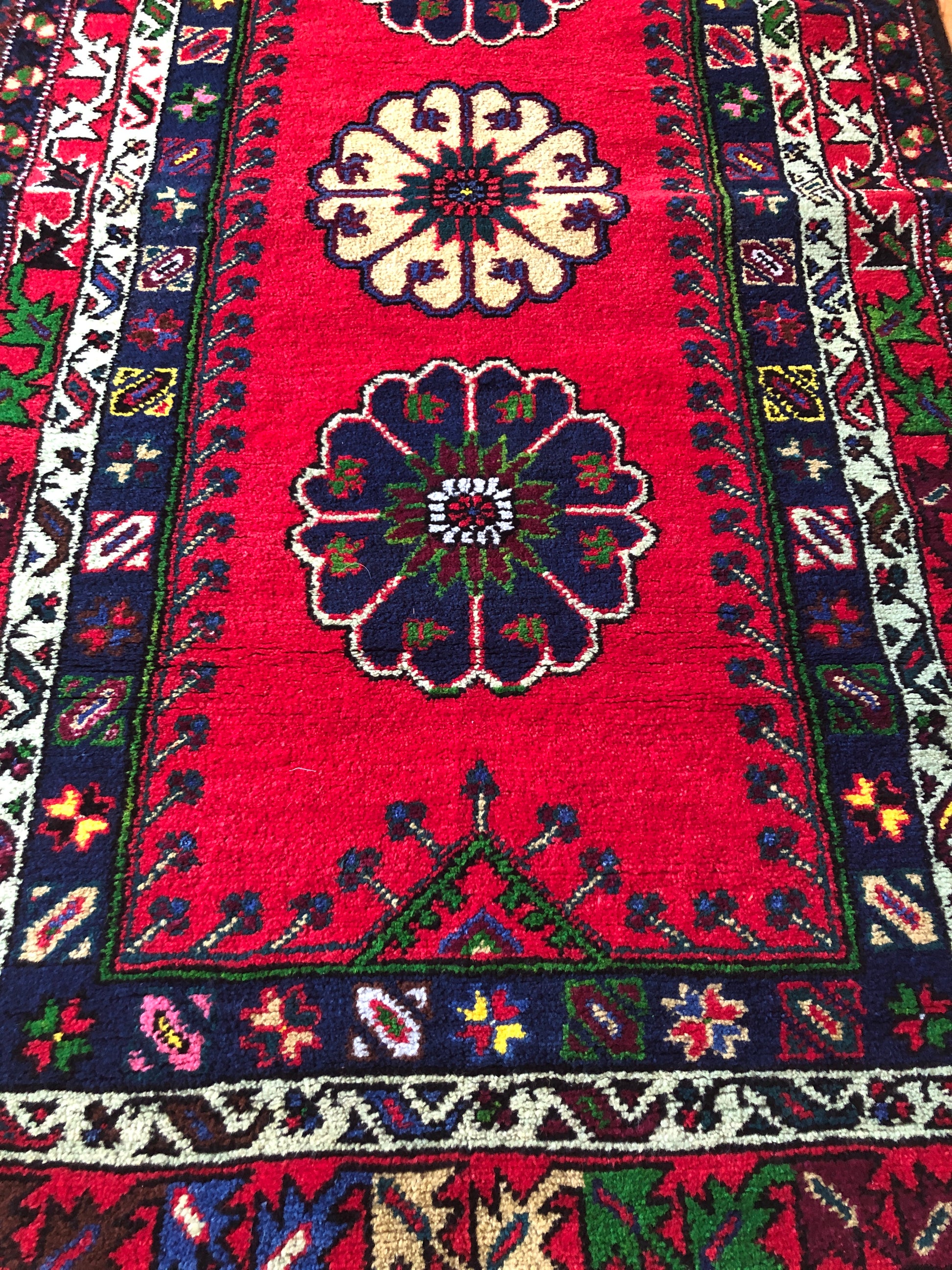 This Turkish rug is handmade with superior-quality wool and weave. Its very dense pile ensures it will last for generations. Turkish Rugs are famous for their beautiful designs. You can put this Turkish rug in any high-traffic room.