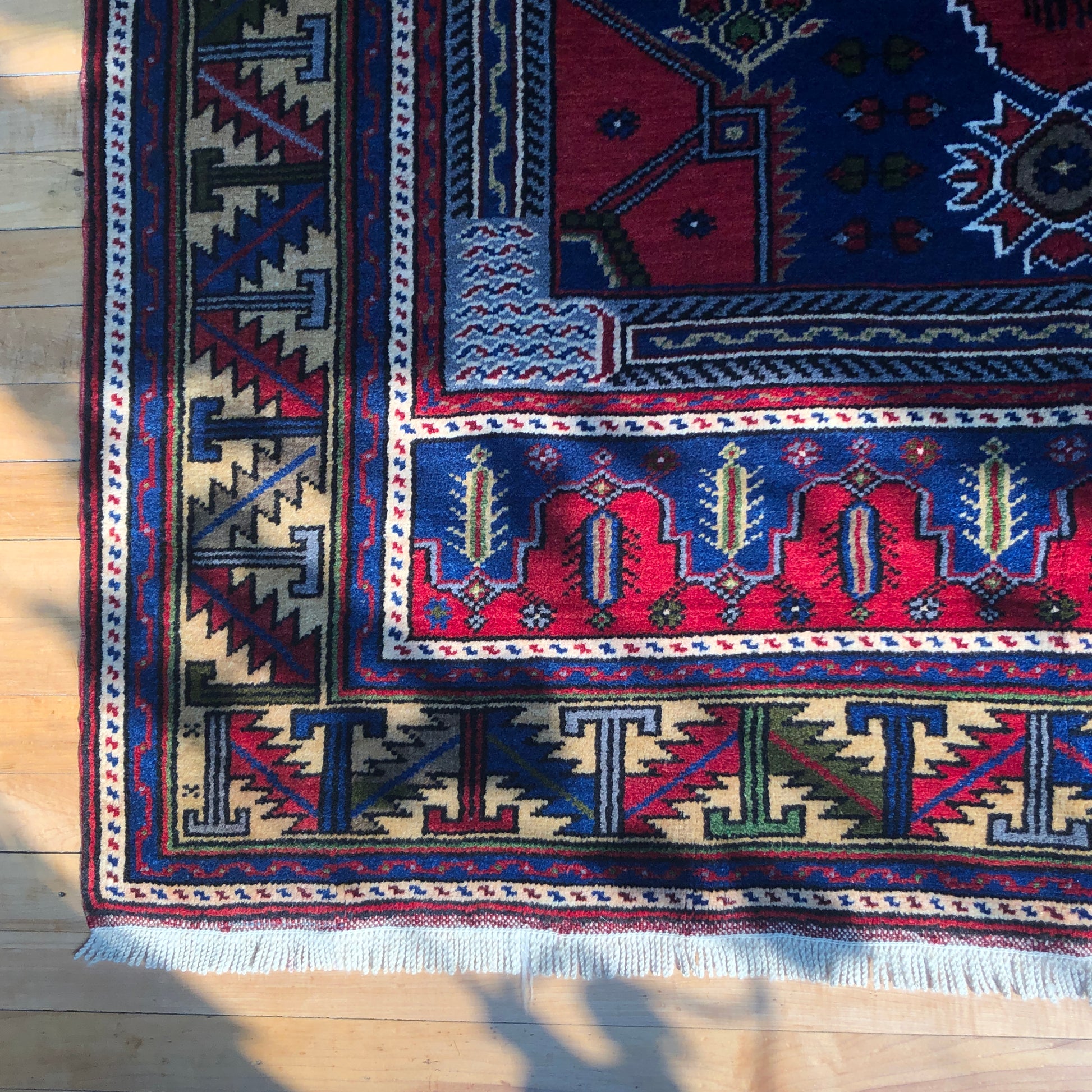 This Turkish rug is handmade with superior-quality wool and weave. Its very dense pile ensures it will last for generations. Turkish Rugs are famous for their beautiful designs. You can put this Turkish rug in any high-traffic room.